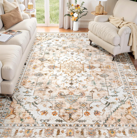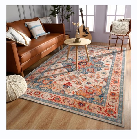 アンティーク洗える面積ラグ5x7滑り止めリビングルームカーペットフェイクカシミア低パイルカーペット