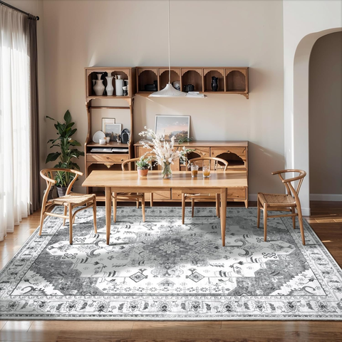 ベッドルームダイニングルーム用ビンテージデザインエリアラグ洗える滑り止めマシン洗えるカーペット